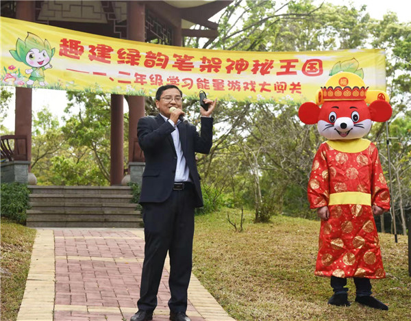 在鳥(niǎo)語(yǔ)相伴下,深圳市學(xué)生文聯(lián)秘書(shū)長(zhǎng)謝晨的講話拉開(kāi)本次活動(dòng)的序幕,他贊揚(yáng)了華新小學(xué)學(xué)生們學(xué)業(yè)上的優(yōu)秀表現(xiàn),肯定本次活動(dòng)寓教于自然的教學(xué)方式,也表達(dá)了多次參加華新小學(xué)的活動(dòng)的喜悅之情。隨后,每個(gè)年級(jí)各準(zhǔn)備了兩個(gè)節(jié)目為現(xiàn)場(chǎng)帶來(lái)歡樂(lè)的氣氛,“綠韻筆架?趣建我的學(xué)習(xí)能量王國(guó)”活動(dòng)正式開(kāi)始,學(xué)生們紛紛往自己年級(jí)的活動(dòng)區(qū)域飛奔而去。