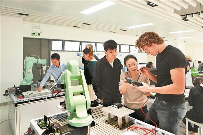 來(lái)自德國(guó)肯普滕國(guó)立第一職業(yè)學(xué)校的交換生在深圳參加技能培訓(xùn)。