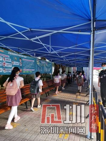 我起了個(gè)大早,高高興興地來(lái)到學(xué)校。在校門口不遠(yuǎn)處,我看見(jiàn)一排排金色小腳印在望著我笑,好像在對(duì)我說(shuō):“歡迎你返校!”進(jìn)入校園后,熟悉的林蔭道下多了許多的大帳篷,帳篷中間有一個(gè)巨大的測(cè)溫箱。走過(guò)測(cè)溫箱,一排感應(yīng)免洗洗手液站得筆直,正在招呼我們趕緊洗手消毒。因?yàn)樾鹿谝咔椋覀兊男@不一樣了,多了許多守護(hù)我們健康的安全小衛(wèi)士。
