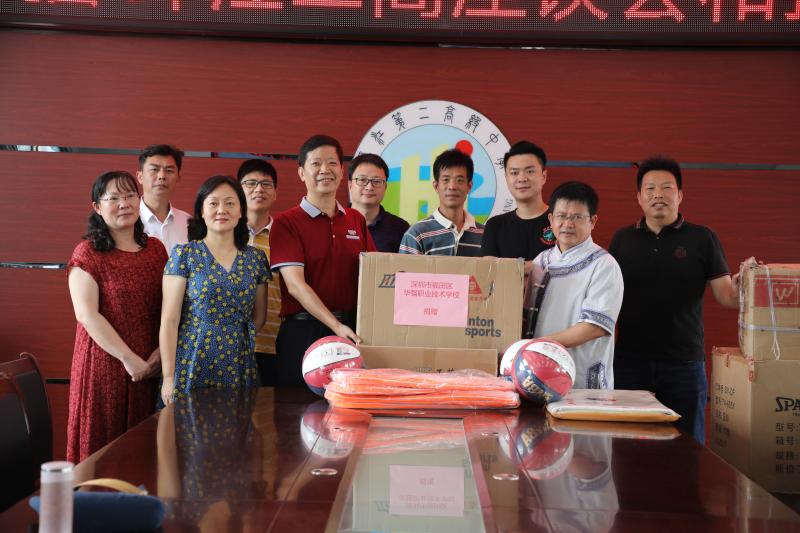 幫扶捐贈儀式上,華強職校代表團代表學(xué)校向環(huán)江職校捐贈了7箱文體教學(xué)用品,有毛筆、宣紙,籃球、羽毛球拍、乒乓球拍等,價值2萬多元人民幣,表達了華強職校對對口支教的兄弟學(xué)校的深情厚誼。