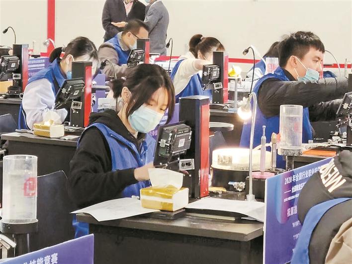 博倫職業(yè)技術(shù)學(xué)校學(xué)生參加珠寶玉石檢測技能大賽。