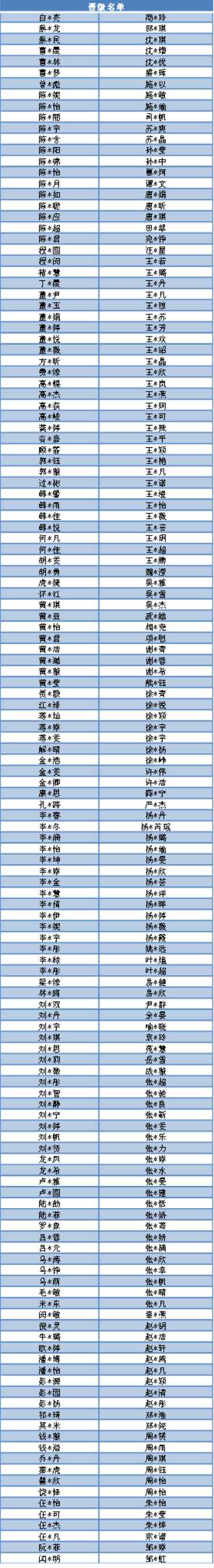 公布名單以姓氏首拼排序,排名不分先后,3月仍有晉級名單近期持續(xù)公布中。
