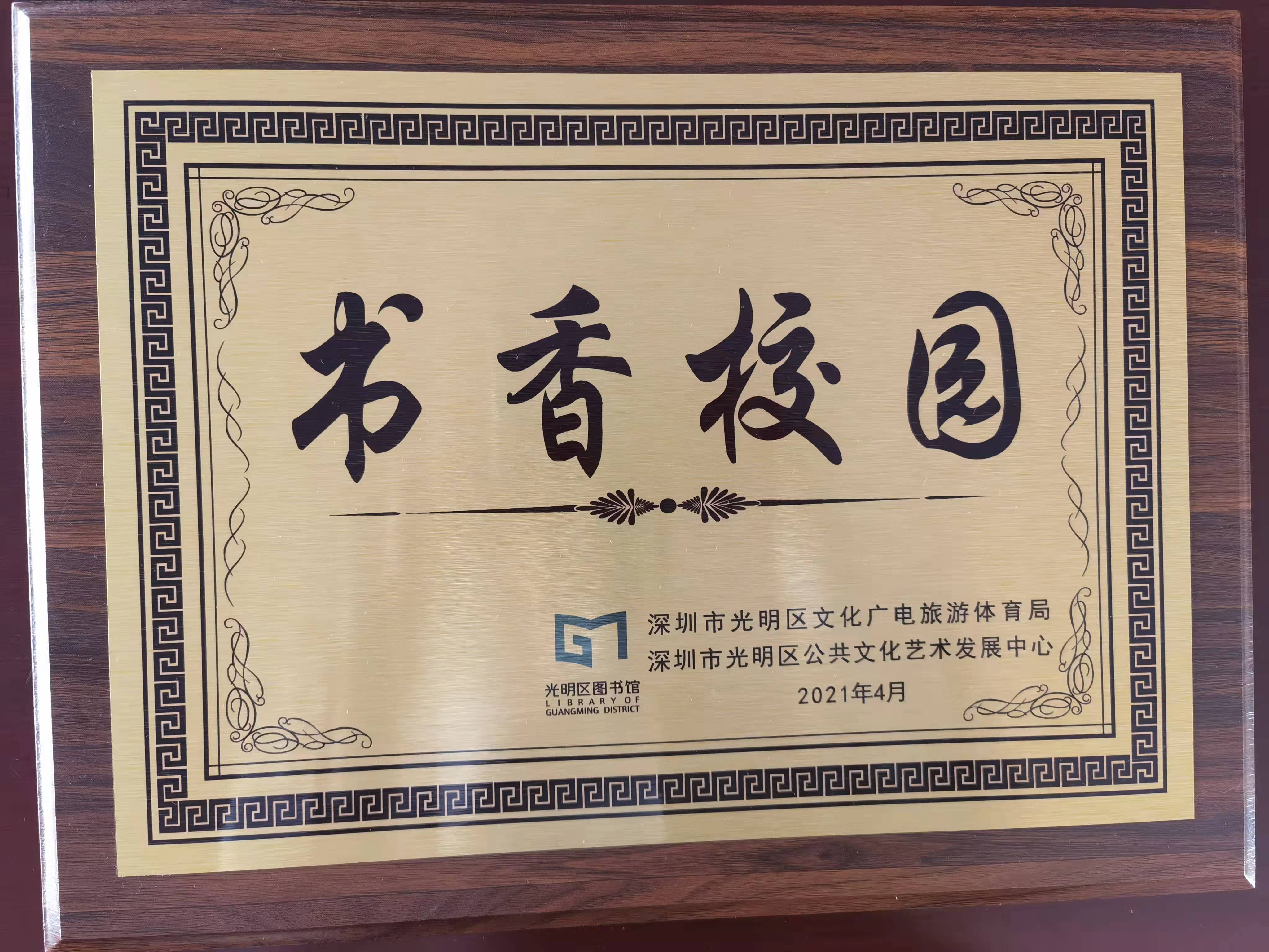 在2021年粵港澳“共讀半小時”光明區(qū)活動啟動儀式上,學(xué)校榮獲光明區(qū)“書香校園”的稱號。