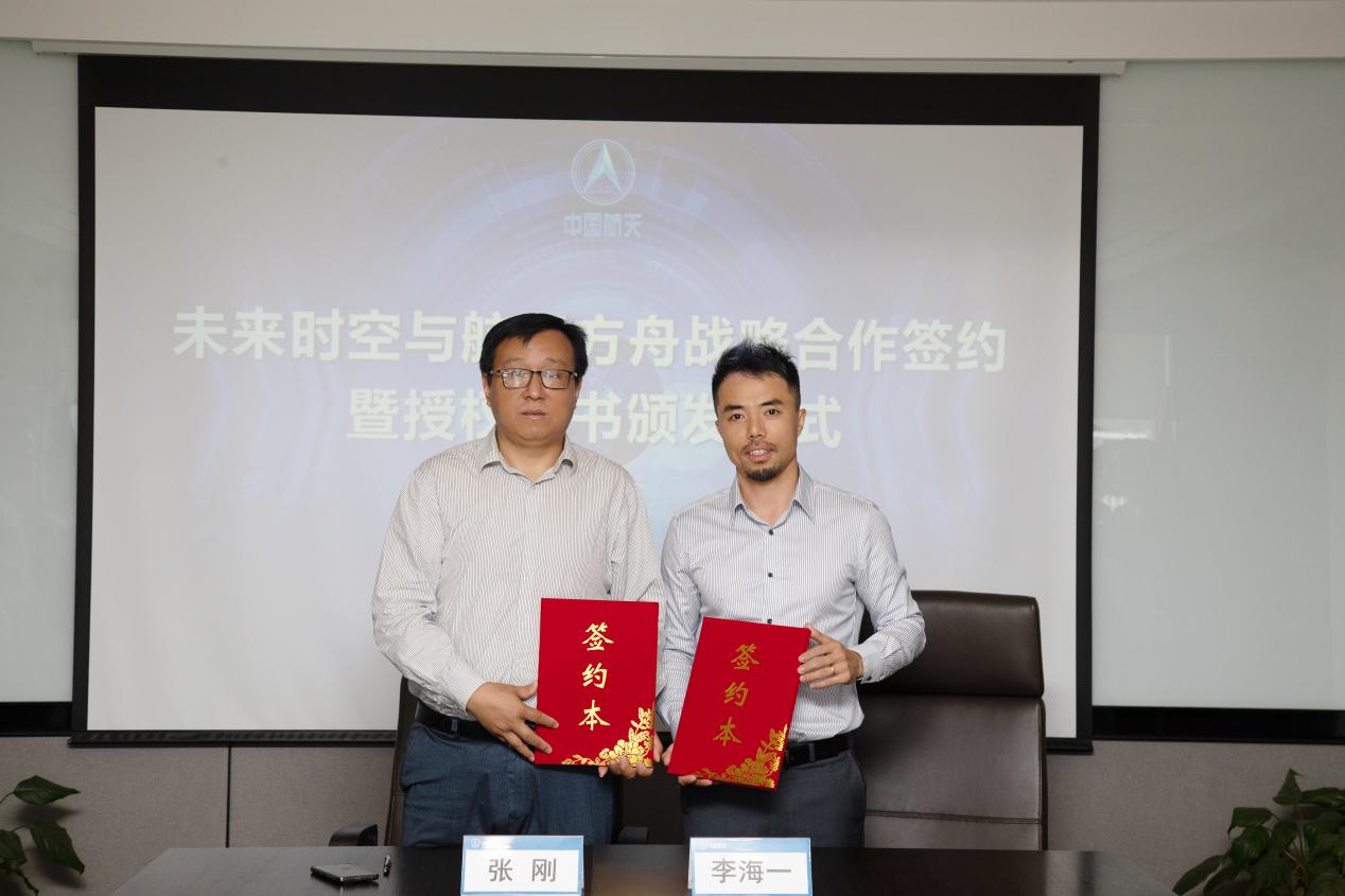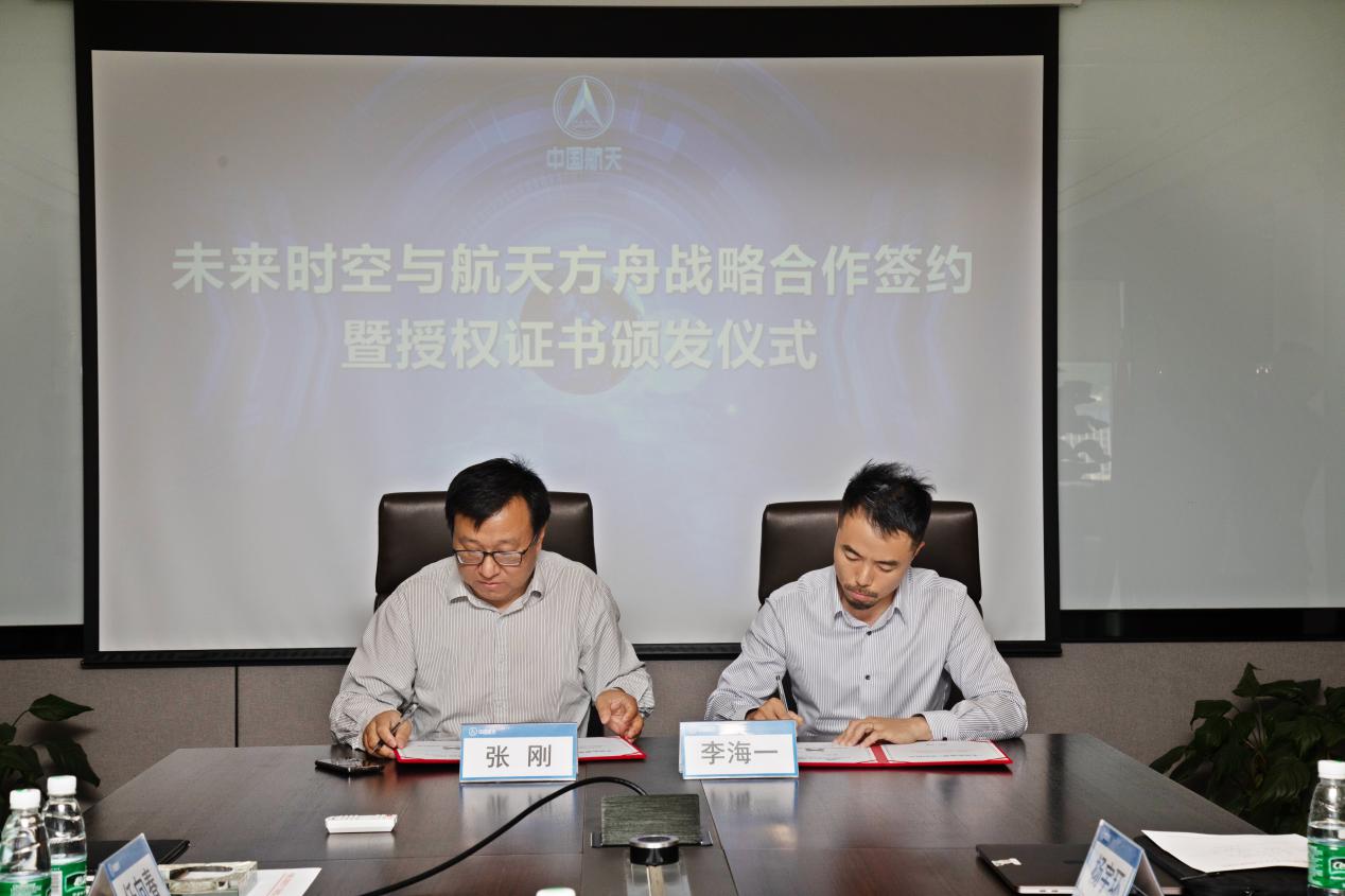 北京航天方舟空間技術(shù)有限公司董事長張剛,未來時(shí)空(深圳)文化產(chǎn)業(yè)有限公司創(chuàng)始人兼董事長李海一、北京航天方舟空間技術(shù)有限公司總經(jīng)理孫愻,未來時(shí)空(深圳)文化產(chǎn)業(yè)有限公司聯(lián)合創(chuàng)始人陳欣泉、楊宇環(huán)等出席本次儀式。