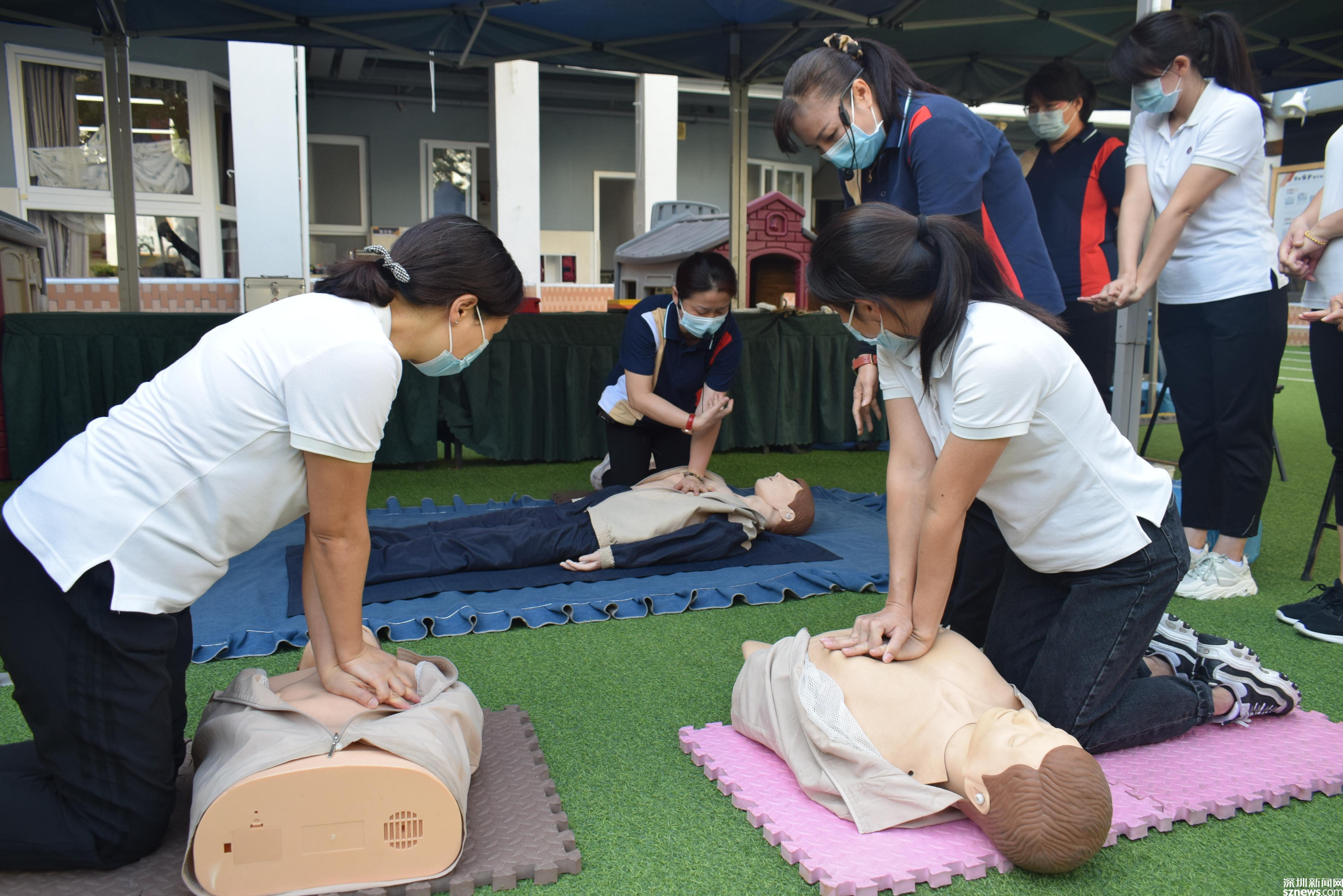 大鏟社區(qū)還組織全園教職工進行心肺復(fù)蘇訓(xùn)練和骨折包扎訓(xùn)練。教職工們在安全老師一對一指導(dǎo)與糾正下,反復(fù)訓(xùn)練,基本掌握了心肺復(fù)蘇和骨折包扎步驟及動作要點。
