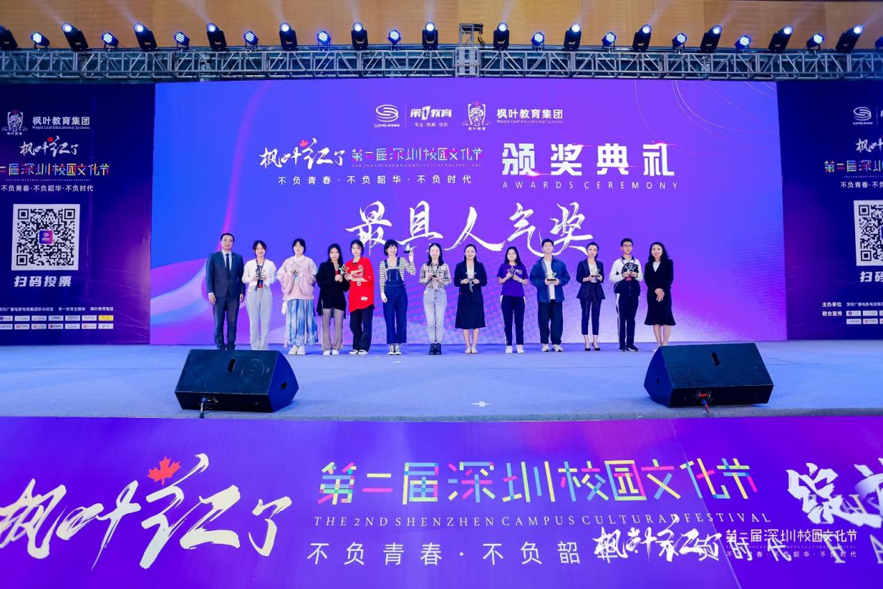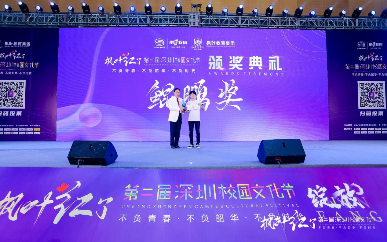 另據(jù)了解,本屆活動(dòng)不以競賽為目的,不設(shè)專業(yè)評委,不設(shè)專業(yè)分?jǐn)?shù),不設(shè)獎(jiǎng)牌等級,而是以鼓勵(lì)學(xué)生全面發(fā)展、校園文化交流為初心,由觀眾們自發(fā)投票評選出魅力社團(tuán)獎(jiǎng)、優(yōu)秀指導(dǎo)老師獎(jiǎng)、鯤鵬獎(jiǎng)、綻放獎(jiǎng)、最具人氣獎(jiǎng)。記者從現(xiàn)場了解到,獲得本屆魅力社團(tuán)獎(jiǎng)的學(xué)校有10所,分別是:深圳市南山區(qū)文理實(shí)驗(yàn)學(xué)校(集團(tuán))《模擬聯(lián)合國社》、南山區(qū)前海學(xué)?!栋羟蜿?duì)》、深圳實(shí)驗(yàn)學(xué)校高中部《回聲合唱團(tuán)》、深圳高級中學(xué)(集團(tuán))中心校區(qū)《深高學(xué)生戲劇團(tuán)》、深圳市楓葉學(xué)?!队⒄Z戲劇社》、深圳市龍華中學(xué)《跆拳道空手》、深圳市蛇口育才教育(集團(tuán))育才中學(xué) 《404樂隊(duì)》、深圳市育新學(xué)校 《The best軍樂團(tuán)》、南方科技大學(xué)附屬中學(xué)《機(jī)器人隊(duì)》、深圳市藝術(shù)高中《鐘呂交響管樂團(tuán)》;獲得本屆校園文化節(jié)鯤鵬獎(jiǎng)(唯一)的學(xué)校是:南方科技大學(xué)附屬中學(xué);獲得本屆校園文化節(jié)綻放獎(jiǎng)的是9所學(xué)校,分別是:深圳市第一職業(yè)技術(shù)學(xué)校、深圳中學(xué)、深圳市藝術(shù)高中、深圳市寶安中學(xué)(集團(tuán))、深圳市第三職業(yè)技術(shù)學(xué)校、深圳市楓葉學(xué)校、深圳市龍崗區(qū)龍城高級中學(xué)、寶安區(qū)為明雙語實(shí)驗(yàn)學(xué)校、深圳市蛇口育才教育(集團(tuán))育才中學(xué);獲得現(xiàn)場最具人氣獎(jiǎng)的學(xué)校有10所,分別是:深圳市第一職業(yè)技術(shù)學(xué)校、深圳市福田區(qū)華強(qiáng)職業(yè)技術(shù)學(xué)校、深圳市第三職業(yè)技術(shù)學(xué)校、深圳大學(xué)附屬中學(xué)、紅嶺中學(xué)(集團(tuán))石廈初中部、龍崗區(qū)蘭著學(xué)校、萬科梅沙書院、深圳市南山區(qū)文理實(shí)驗(yàn)學(xué)校(集團(tuán))、筍崗中學(xué)、寶安中學(xué)(集團(tuán));最后同時(shí)獲得本屆校園文化節(jié)優(yōu)秀指導(dǎo)老師獎(jiǎng)的學(xué)校分別來自:南方科技大學(xué)附屬中學(xué)、深圳市第一職業(yè)技術(shù)學(xué)校、深圳中學(xué)、深圳市蛇口育才教育(集團(tuán))育才中學(xué)、深圳市寶安中學(xué)(集團(tuán))、深圳市第三職業(yè)技術(shù)學(xué)校、深圳市藝術(shù)高中、深圳市楓葉學(xué)校、寶安區(qū)為明雙語實(shí)驗(yàn)學(xué)校、深圳市龍崗區(qū)龍城高級中學(xué)。
