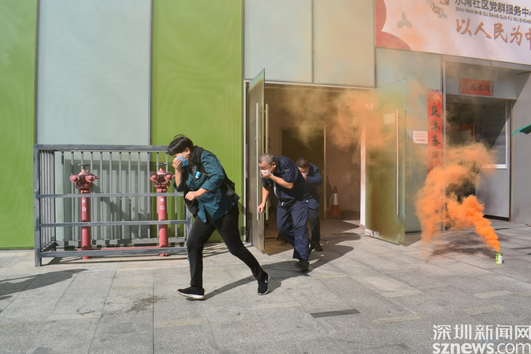 社區(qū)巡查人員發(fā)現(xiàn)水灣1979廣場三座發(fā)生火災,冒出大量濃煙,火勢處于初級階段,著火物質(zhì)不明,便立刻上報并撥打119報火警。確認水灣1979廣場三座發(fā)生火災后,社區(qū)立即啟動消防應急預案,消防演練正式開始。