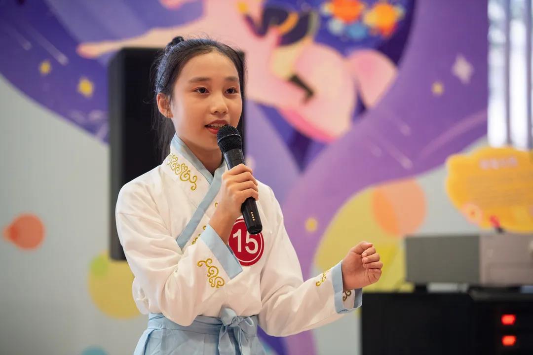 在甘坑社區(qū)廣場,現(xiàn)場早早搭起了舞臺,來自甘李學(xué)校的17名優(yōu)秀古詩詞愛好者躊躇滿志、躍躍欲試,甘坑社區(qū)黨委副書記魏阿妮親自擔(dān)任活動主持人,選手們輪番上場,為評委及社區(qū)居民呈現(xiàn)了一場精彩的文化活動。