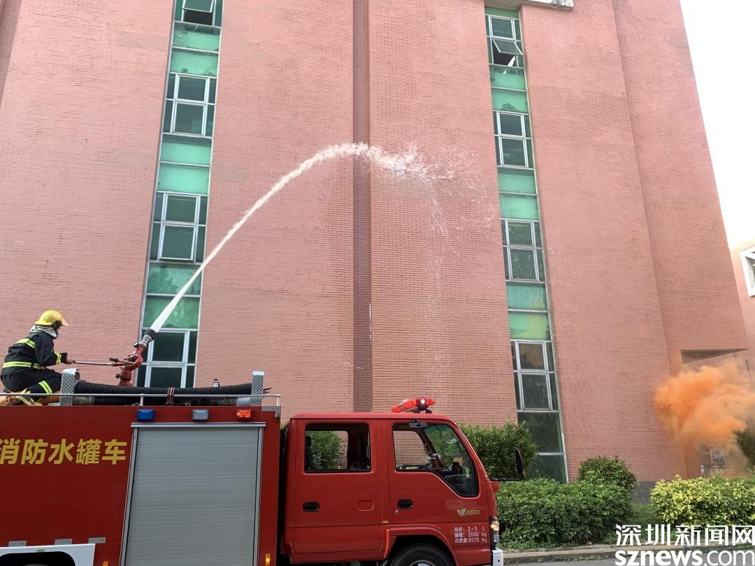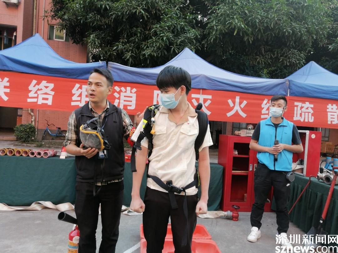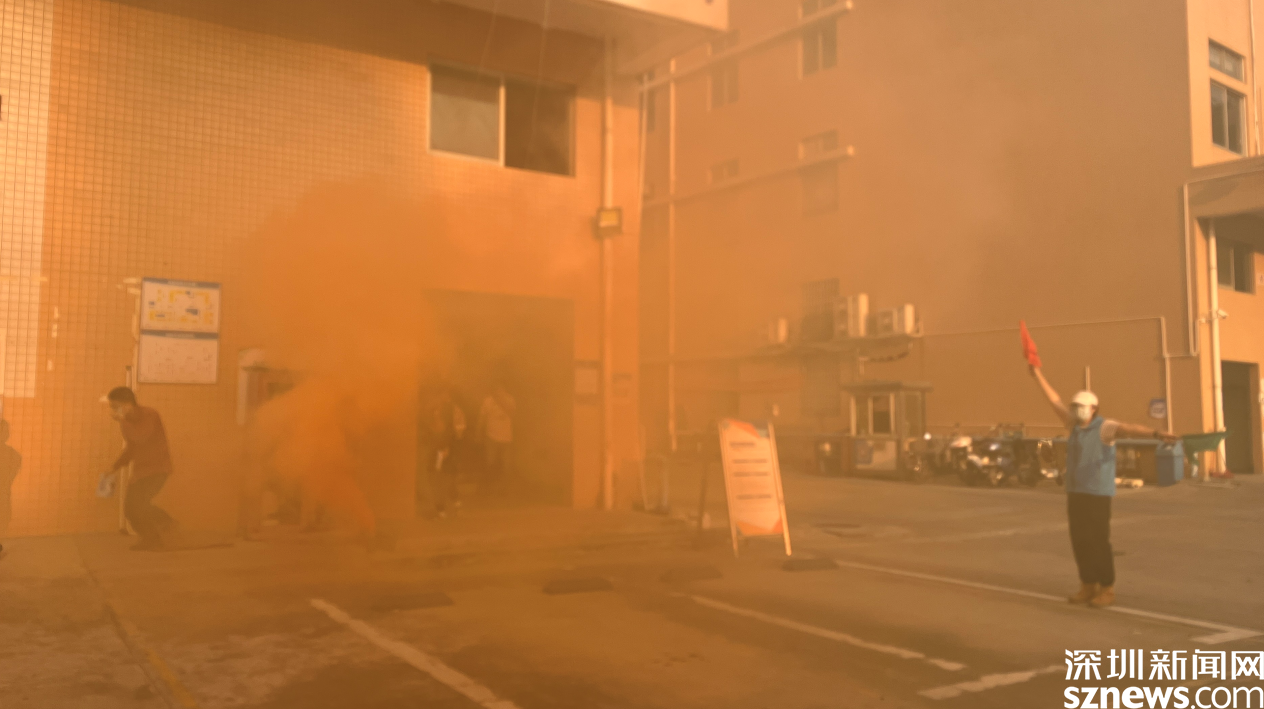演練情景設定為工業(yè)園巡查人員發(fā)現(xiàn)火情,立刻上報并報警。隨后火警警報驟響,樓道內冒出濃煙,疏散演練正式開始。工業(yè)園職工、居民在各組工作人員的指揮下,用口罩、衣服等捂口鼻,屈膝彎腰沿著既定的疏散路線,迅速向安全區(qū)域撤離。隨后社區(qū)消防員到達現(xiàn)場,用消防高壓水槍進行高空滅火,撲滅火災,解除警報。演練結束后,社區(qū)還組織工業(yè)園職工、居民參加安全體驗活動,學習消防救援設備的用法、進行消防結繩和滅火實操訓練。