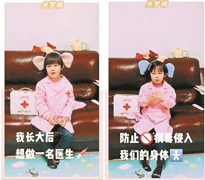 近日,深圳市梅林一村幼兒園小三巧虎班通過遠(yuǎn)程線上溝通互動,制定創(chuàng)意計(jì)劃,用錄制才藝小視頻、編創(chuàng)兒歌等方式,為奮戰(zhàn)在抗疫一線的醫(yī)護(hù)人員打氣助力,加油祝福。