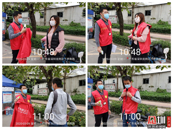 在社區(qū)工作人員的指導(dǎo)下,這位男子穿上“紅馬甲”,手拿體溫槍,立即投入到了防疫義工服務(wù)中。為進(jìn)出人員測量體溫、登記等,這位男子“不漏一車一人”,義工服務(wù)做得十分認(rèn)真。半小時(shí)志愿服務(wù)后,該男子意識到自己不戴頭盔的錯(cuò)誤行為,并表示以后會注意,“這是一次很特別的‘教訓(xùn)’,以后我肯定會記住戴頭盔的!”