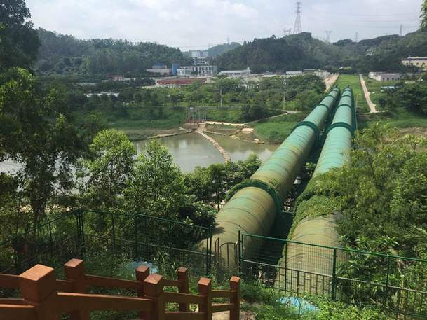 【直播君】:經(jīng)過一路跋涉,直播小分隊(duì)已經(jīng)到達(dá)今天的第一站坑梓水庫(kù)啦,先看看地面這一條條引水管道,水庫(kù)全貌航拍圖馬上新鮮出爐!