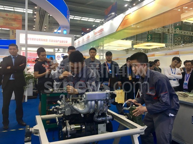 寶安職業(yè)技術(shù)學(xué)院學(xué)生現(xiàn)場進(jìn)行汽車發(fā)動機拆裝與檢測