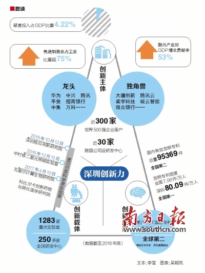 其二,海納百川,為我所用。創(chuàng)新驅(qū)動(dòng)實(shí)質(zhì)上是智力驅(qū)動(dòng)、人才驅(qū)動(dòng)。科技創(chuàng)新要取得突破,關(guān)鍵在人才。深圳近年來(lái)創(chuàng)新驅(qū)動(dòng)發(fā)展取得明顯成效,一個(gè)重要原因就是造就了一批規(guī)模宏大、結(jié)構(gòu)合理、敢于擔(dān)當(dāng)?shù)母邔哟蝿?chuàng)新人才隊(duì)伍,以80后、90后為代表的一批年輕企業(yè)家加速向深圳集聚,逐漸成為創(chuàng)業(yè)創(chuàng)新的中堅(jiān)力量。同時(shí),加大招才引智力度,2016年新引進(jìn)“孔雀計(jì)劃”高層次創(chuàng)新團(tuán)隊(duì)23個(gè)、全職院士6名,新增海歸人才1.05萬(wàn)人、高技能人才12.6萬(wàn)人。更加可喜的是,一批世界頂級(jí)科學(xué)家先后入駐深圳,諾貝爾獎(jiǎng)獲得者羅伯特·格拉布斯與南方科技大學(xué)合作致力于新醫(yī)藥、新材料和新能源領(lǐng)域研究,諾貝爾物理學(xué)獎(jiǎng)獲得者中村修二組建中村修二激光照明實(shí)驗(yàn)室在下一代照明技術(shù)領(lǐng)域開(kāi)展前沿研究……毫無(wú)疑問(wèn),深圳已經(jīng)成為對(duì)全球高端人才最具吸引力的地方之一。