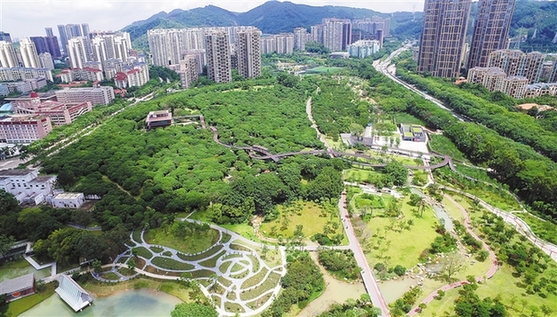 截至2016年底,深圳公園總數達921個,功能多樣、覆蓋全面的“公園之城”基本形成。圖為香蜜公園內綠色盎然。 深圳商報記者 鐘華登攝
