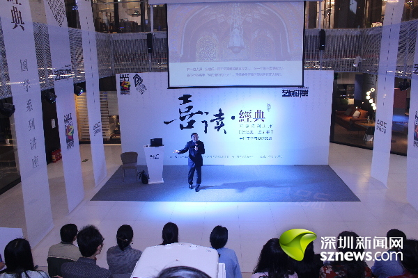 深圳新聞網(wǎng)訊(記者 劉嘉敏)12月2日下午,第十三屆創(chuàng)意十二月之藝展中心創(chuàng)藝節(jié)“談經(jīng)典,道未來(lái)——喜讀經(jīng)典講座”活動(dòng)重磅來(lái)襲,本次活動(dòng)由深圳市文體旅游局主辦,深圳市羅湖區(qū)投資推廣局、滿京華藝展中心承辦,深圳市“設(shè)計(jì)之都”推廣辦主任、中國(guó)人民大學(xué)倫理學(xué)博士、國(guó)學(xué)名家韓望喜作為主講嘉賓向觀眾分享“中國(guó)美學(xué)與設(shè)計(jì)意蘊(yùn)”的主題講座,吸引了近百名觀眾前來(lái)參加聆聽,其中不乏設(shè)計(jì)從業(yè)的人員。