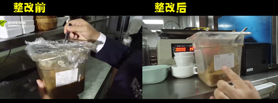 4月19日記者回訪發(fā)現(xiàn)該餐廳負(fù)責(zé)人整改態(tài)度積極,針對檢查中指出的問題進(jìn)行了逐項整改,包括:后廚外專門騰出一個空間擺放食材及工具,不再占用廚房區(qū)域;生熟食已做到分開放置;倉庫擺放整齊有序;消毒柜溫度已可以達(dá)到90度以上;新設(shè)置一個粗加工區(qū)與烹調(diào)區(qū)隔離開;被查封的涼菜間重新進(jìn)行了問題排查與改善。經(jīng)過轄區(qū)食藥監(jiān)管部門的復(fù)評后目前該餐廳的餐飲量化等級已恢復(fù)至B級。該餐廳負(fù)責(zé)人也向記者表示,“星期三查餐廳”不僅是檢查,還給予他們對后廚管理的手把手的指導(dǎo),提升很大,后續(xù)將繼續(xù)加強后廚管理,給消費者一個安全健康的就餐環(huán)境保障。