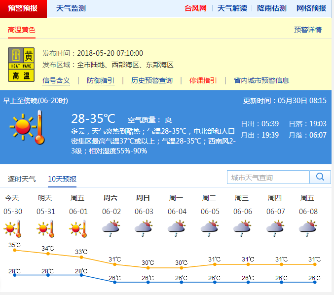 5月29日,深圳國家基本氣象站記錄到最高氣溫35.6℃,是今年以來的最高氣溫,也是1977年以來5月出現的最高氣溫,成為有氣象記錄以來的5月第2高值。昨日的最高溫在梧桐村站測得,達38.9℃。