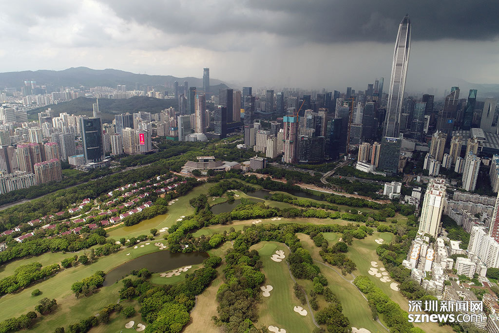 烏云籠罩下的平安大廈與深圳高爾夫俱樂部球場