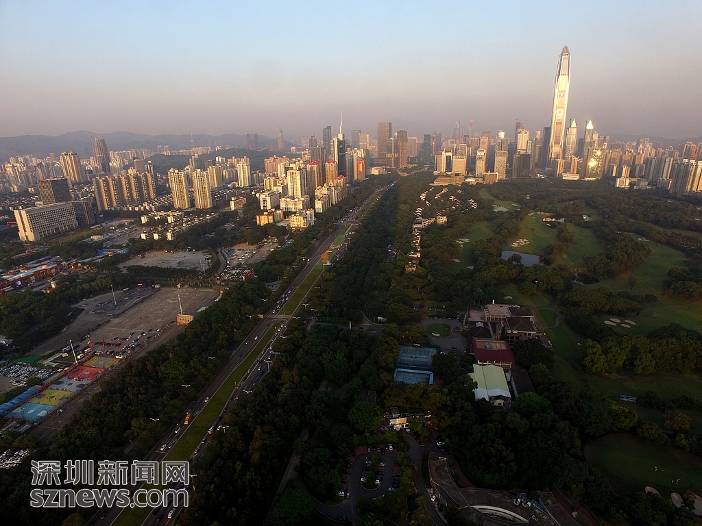 在夕陽(yáng)西墜的低色溫下,高爾夫球場(chǎng)在周邊林立高樓和晚高峰車(chē)流的映襯下顯得格外安靜。深圳新聞網(wǎng)記者 陳飛 鄭曉鵬 攝