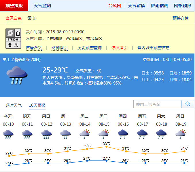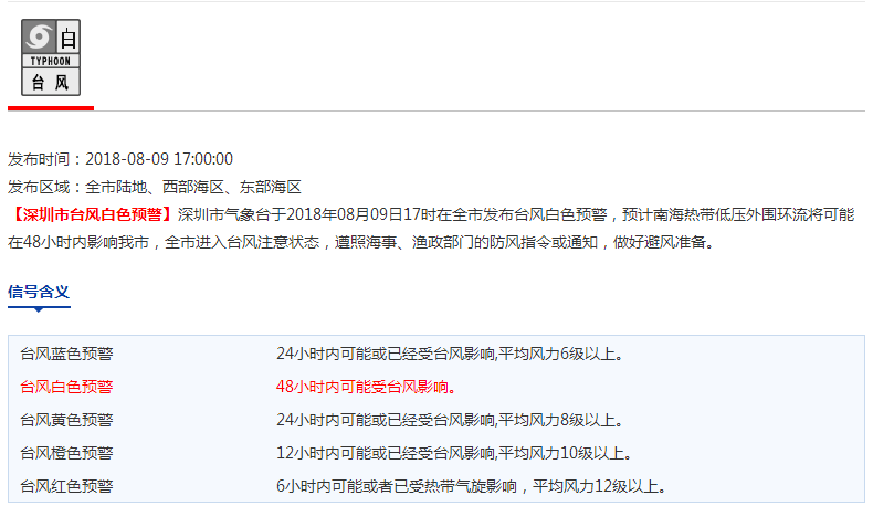 市氣象局于8月9日17時(shí)發(fā)布臺(tái)風(fēng)白色預(yù)警信號(hào)