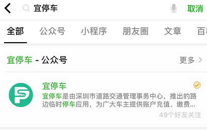 2、添加微信公眾號(hào)“宜停車(chē)”