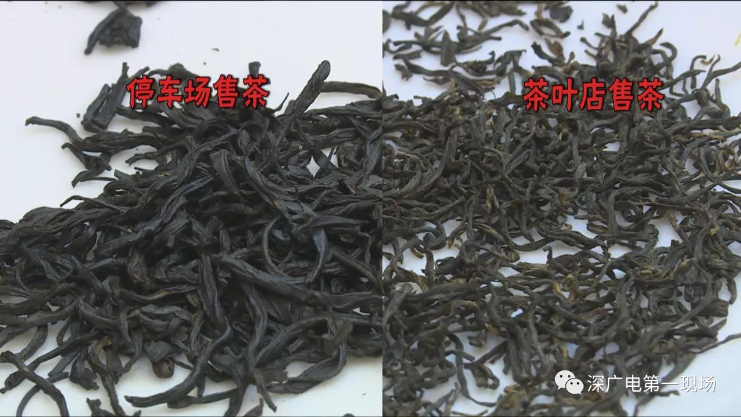 今天,記者也來到位于景田片區(qū)的中國茶宮茶葉批發(fā)市場,一家長期經(jīng)營紅茶的店家介紹,他們店就賣有正山小種和白茶,記者也拿出了劉女士在停車場購買的茶,和店家銷售的正山小種做了對比。店家介紹,停車場售賣的正山小種茶,一小包為標準的5克包裝,分量倒沒有問題,但茶葉外觀和口感上就有說頭了。