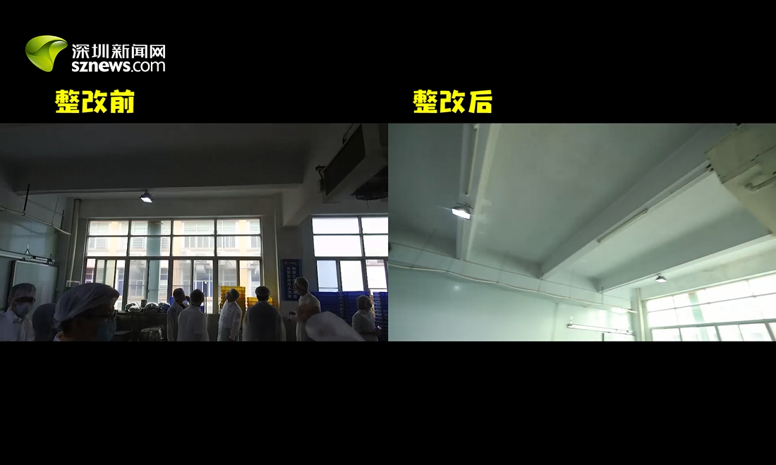 29日突查發(fā)現(xiàn),粗加工間“墻壁漏水長霉”“地面積水潮濕”。今日深圳新聞網回訪發(fā)現(xiàn),漏水和發(fā)霉部位已整改完畢,墻面未發(fā)現(xiàn)漏水和發(fā)霉現(xiàn)象。