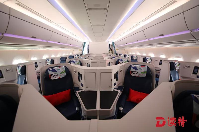 除了色彩繽紛的熊貓彩繪之外,機艙內(nèi)的熊貓元素隨處可見,仿佛把大熊貓基地搬上了天。