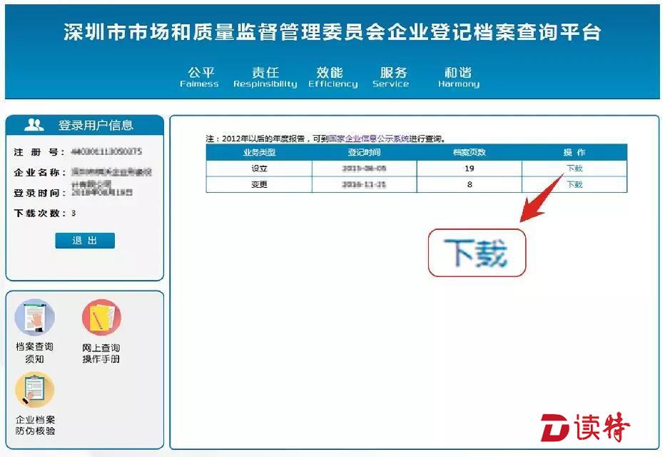 驗(yàn)證成功后,電腦顯示進(jìn)入查詢頁面,顯示與登錄人有關(guān)的企業(yè)名稱。點(diǎn)擊要查詢檔案的企業(yè)名稱,顯示列出“企業(yè)登記檔案”。