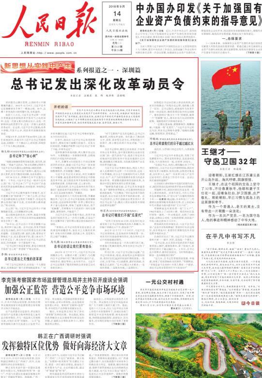 人民日報今起推出“新思想從實踐中產(chǎn)生”系列報道,通過實地采訪,追溯習近平新時代中國特色社會主義思想的實踐軌跡。系列報道開篇之作《總書記發(fā)出深化改革動員令》今天在頭版頭條隆重推出,全文轉(zhuǎn)載如下: