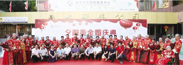 蛇口街道南水社區(qū)居民耿玉璽與王月鳳兩位老人已經(jīng)攜手走過69年,一直有個遺憾藏在心里——兩人年輕時沒有舉辦過婚禮,連一張結(jié)婚照片都沒有。日前,二老的遺憾得到彌補,愿望得以實現(xiàn)。南水社區(qū)黨委以開展民生微實事為契機,為包括耿玉璽與王月鳳夫婦在內(nèi)的社區(qū)15對老年夫婦舉辦了一場別開生面的夕陽美集體金婚慶典活動。眾多嘉賓及老人的親朋好友、子女兒孫到場見證,獻上掌聲和祝福。