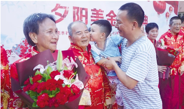 早年,南水村村民以耕種、養(yǎng)蠔、捕魚等為業(yè),數(shù)十載篳路藍縷,一點點改變村里的落后面貌?!笆芟抻谖镔|匱乏,很多都沒有舉辦過正式的婚禮”,南水社區(qū)黨委第一書記巫紅強談到舉辦金婚慶典活動初衷時說,社區(qū)不能忘記老一輩所作出的貢獻,希望通過舉辦金婚慶典活動讓老人重溫“新婚”的甜蜜浪漫,讓老人切實感受到溫暖和關懷,向社區(qū)全體居民倡導尊老、敬老、愛老、助老的良好風尚。此外,以喜慶活動為紐帶、平臺,聯(lián)結、凝聚更加濃厚的鄉(xiāng)情、鄰里情,讓社區(qū)居民感受融洽共處的幸福與溫暖,重溫南水大家庭的團結與同心,不斷推進社區(qū)和諧共融。