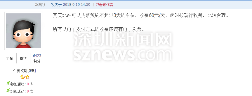 深圳新聞網(wǎng)9月21日訊(記者 施冰冰)“北站停車(chē)三天收費(fèi)412元,這不是暴利嘛?!”近日,深圳一網(wǎng)友發(fā)帖吐槽深圳北站的收費(fèi)標(biāo)準(zhǔn),他認(rèn)為深圳市中心的商業(yè)寫(xiě)字樓一天封頂也不過(guò)60元,高鐵站社會(huì)停車(chē)場(chǎng)作為老百姓的公共交通基礎(chǔ)設(shè)施,憑什么比市中心的商業(yè)寫(xiě)字樓還貴2倍多?(帖文:《 北站社會(huì)停車(chē)場(chǎng)作為老白姓的公共交通基礎(chǔ)設(shè)施,憑什么比市中心的商業(yè)寫(xiě)字樓還貴2倍多》)