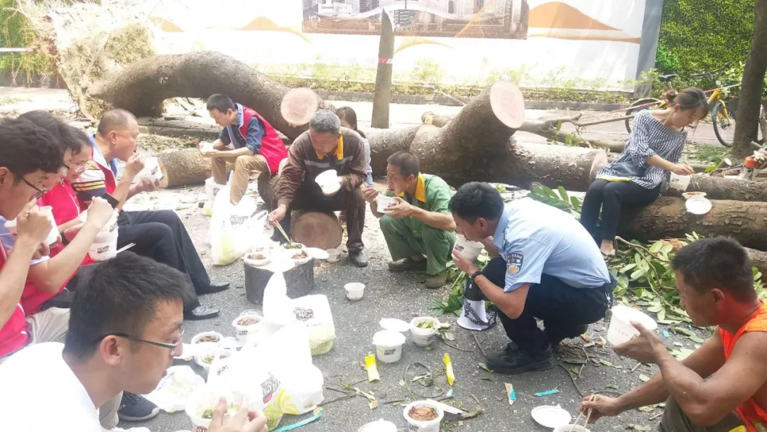 從臺風(fēng)前到臺風(fēng)后,唐順華一直在一線。他不僅是一個指揮員,還是一名戰(zhàn)斗員,一起去處理倒伏樹木、清理路障。因為人手非常有限,他不僅一直要組織指揮,自己也一直身體力行,連續(xù)90多個小時沒有回家,一直在轄區(qū),排查隱患,處理事情。