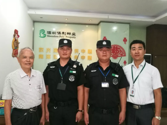▲業(yè)主代表王忠雄與物業(yè)工作人員羅玉均(左二)、張康偉(左三)、楊俊明(左四)合影。