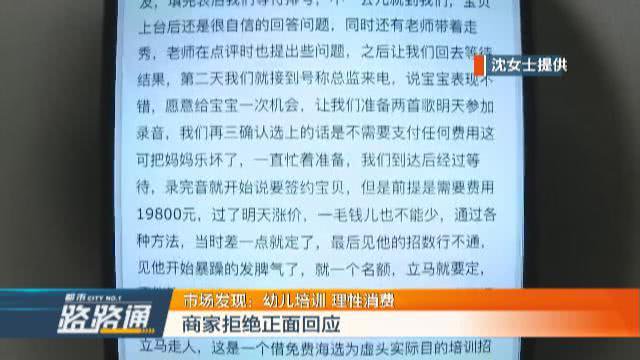 沈女士說(shuō),通過(guò)海選,她的兒子是成功的被選上了,隨后這培訓(xùn)機(jī)構(gòu)就開(kāi)始讓她交報(bào)名費(fèi)了。報(bào)名費(fèi)一共是花了16800元。可是沈女士在交完錢(qián)后,卻很快后悔了,因?yàn)樗X(jué)得消費(fèi)者對(duì)這家公司的評(píng)價(jià),并沒(méi)有他們宣傳得那么好。