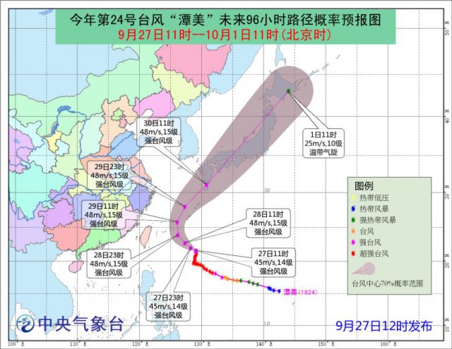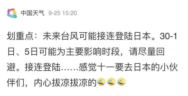 另據(jù) @廣州天氣,"潭美"28-29日最接近臺(tái)灣,隨后掉頭往東北方向移動(dòng),國(guó)慶期間前往臺(tái)灣的朋友不用擔(dān)心。