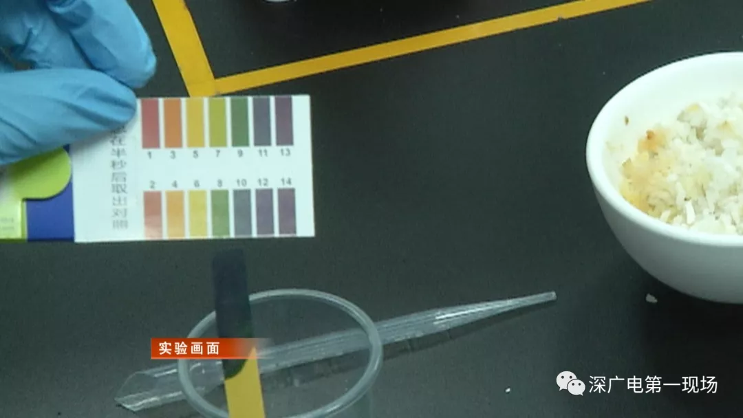 在專業(yè)人士的建議下,記者來到了市監(jiān)快速檢驗(yàn)中心進(jìn)行酸堿度測(cè)試。根據(jù)何先生提供的親身感受和化學(xué)品在餐飲洗滌的使用情況,專業(yè)人士指出白色晶體在PH值大于10的情況下,就很可能是無毒但是具有強(qiáng)腐蝕性的燒堿,而燒堿吸入二氧化碳后就是人們俗稱的小蘇打。
