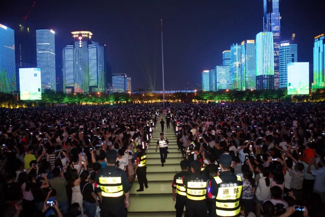 深圳市民中心是開放式場地,每天下午18時許,龐大的人流開始從四面八方涌來觀看燈光秀,給周邊道路交通和現(xiàn)場管理帶來極大壓力。福田警方周密部署、科學設(shè)置“七道防線”和“八片防區(qū)”,設(shè)立現(xiàn)場指揮中心,采取“核心封控、近端管控、遠端疏導”的方式疏導擁擠人流。劃分管控區(qū)域、加裝現(xiàn)場防沖撞設(shè)施、開展武裝巡邏;各部門捆綁作業(yè)、疏散有序、措施到位。