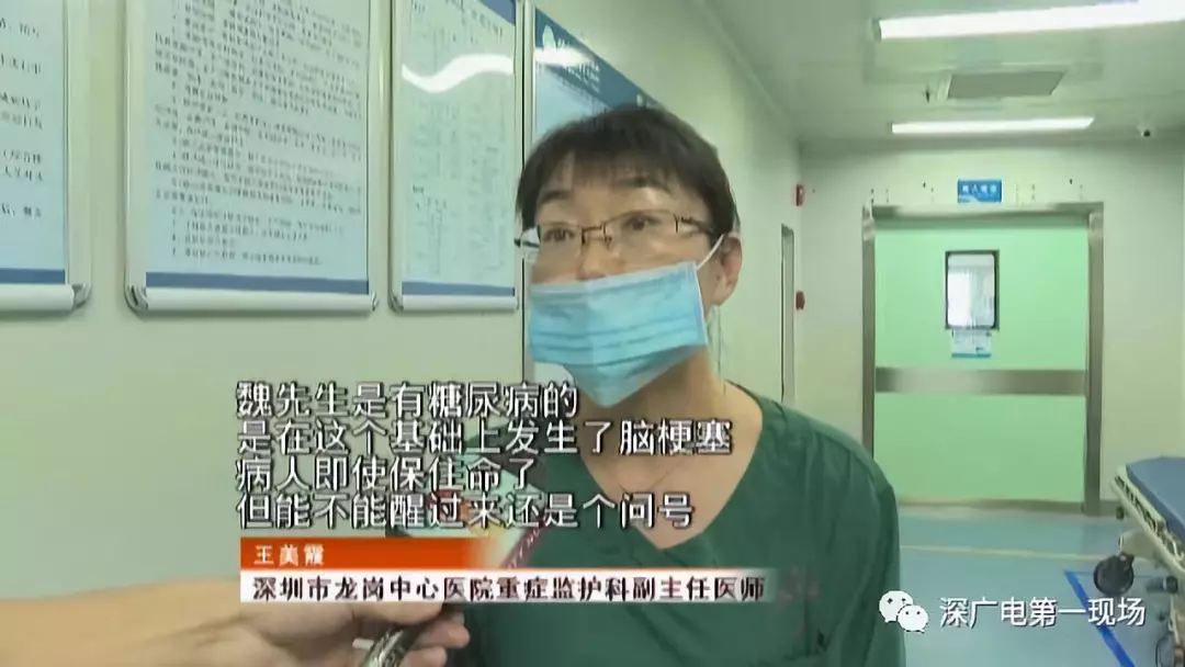蕭先生介紹,魏師傅從一開(kāi)始的清醒到病情加重,只有前后十幾分鐘的時(shí)間。等120救護(hù)車(chē)送到龍崗中心醫(yī)院之后,魏師傅已經(jīng)陷入昏迷,不省人事。