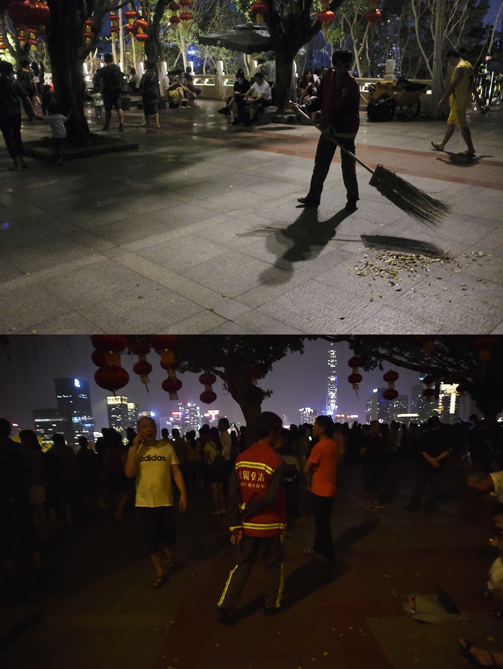 環(huán)衛(wèi)工人在燈光秀期間也在巡查是否有垃圾,并在燈光秀結(jié)束后清掃
