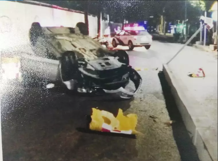 ,小車(chē)側(cè)翻撞成了個(gè)“四輪朝天”,現(xiàn)場(chǎng)一片狼藉,幸運(yùn)的是車(chē)門(mén)開(kāi)得了,周某便打開(kāi)車(chē)門(mén)爬了出來(lái)。