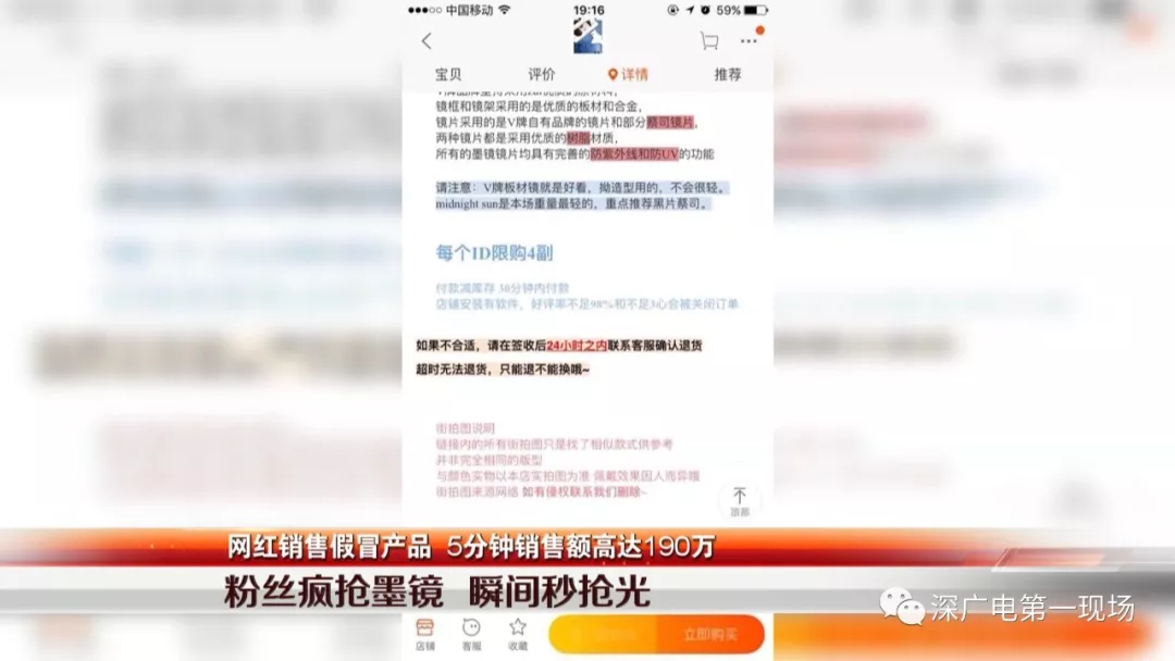 2018年年初,網(wǎng)紅“貓娘”開始在網(wǎng)上做秒搶某知名品牌的墨鏡的預(yù)熱廣告,聲稱原價(jià)1千多的正品只需要三分之一的價(jià)格就可以秒搶,吸引了大量粉絲關(guān)注。正式銷售當(dāng)天,短短5分鐘的時(shí)間,粉絲就瘋狂搶購(gòu)了三千多付墨鏡,銷售額達(dá)到190萬元。