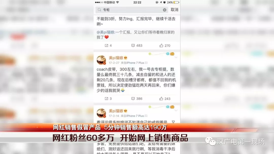 經(jīng)審訊,嫌疑人于某交代,她2013年注冊(cè)了@美Pi貓娘的微博賬號(hào),開始做彩妝的分享和解答,2016年,已擁有近30萬粉絲的她來到深圳做網(wǎng)店,通過自己創(chuàng)立的深圳某珠寶公司做珠寶、彩妝。同時(shí),還通過微博活動(dòng)以及關(guān)愛小的動(dòng)物的善舉吸引更多的人關(guān)注,共積累了62萬粉絲。