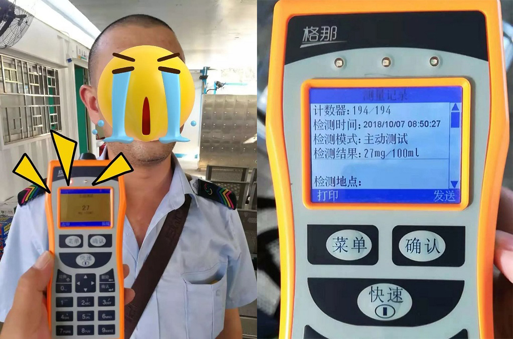 深圳交警到達(dá)現(xiàn)場(chǎng)后,再對(duì)何某平進(jìn)行現(xiàn)場(chǎng)主動(dòng)式酒精測(cè)試儀檢測(cè),結(jié)果顯示其酒精測(cè)試值顯示為27mg/100ml,達(dá)到酒后駕駛的標(biāo)準(zhǔn)。