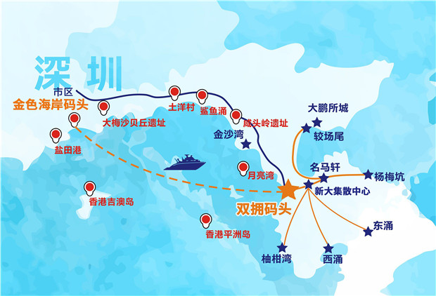 “鹽田金色海岸碼頭-南澳雙擁碼頭”航線示意圖(圖片由深圳航運集團提供)