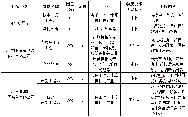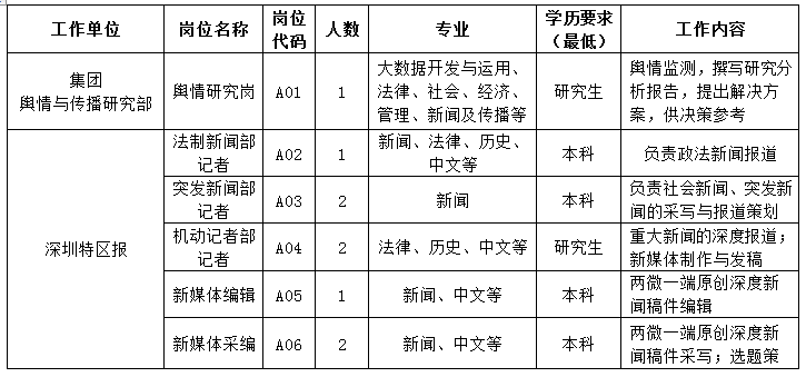【深圳報(bào)業(yè)集團(tuán)2019屆校招崗位需求】