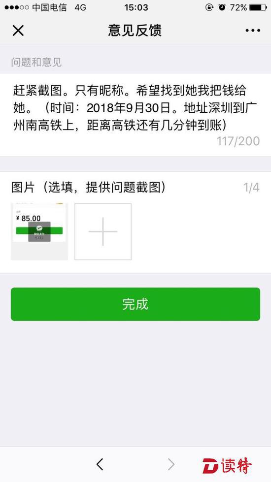 可由于高鐵上網(wǎng)絡(luò)信號不好,李先生的微信支付一直顯示是"處理中",過了一分鐘才顯示轉(zhuǎn)帳失敗,而這時,高鐵已經(jīng)到了廣州南站,李先生又下了車,在廣州南站下車的乘客中找了幾分鐘,但沒有找到這個女孩。由于自己也要在廣州南站轉(zhuǎn)車,李先生時間也很緊,就匆忙上了下一趟去武漢的火車。