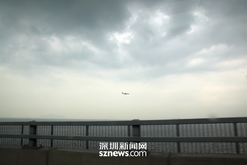 由于港珠澳大橋香港起點(diǎn)就在香港機(jī)場(chǎng)地塊,每隔幾分鐘就有飛機(jī)掠過(guò)天空